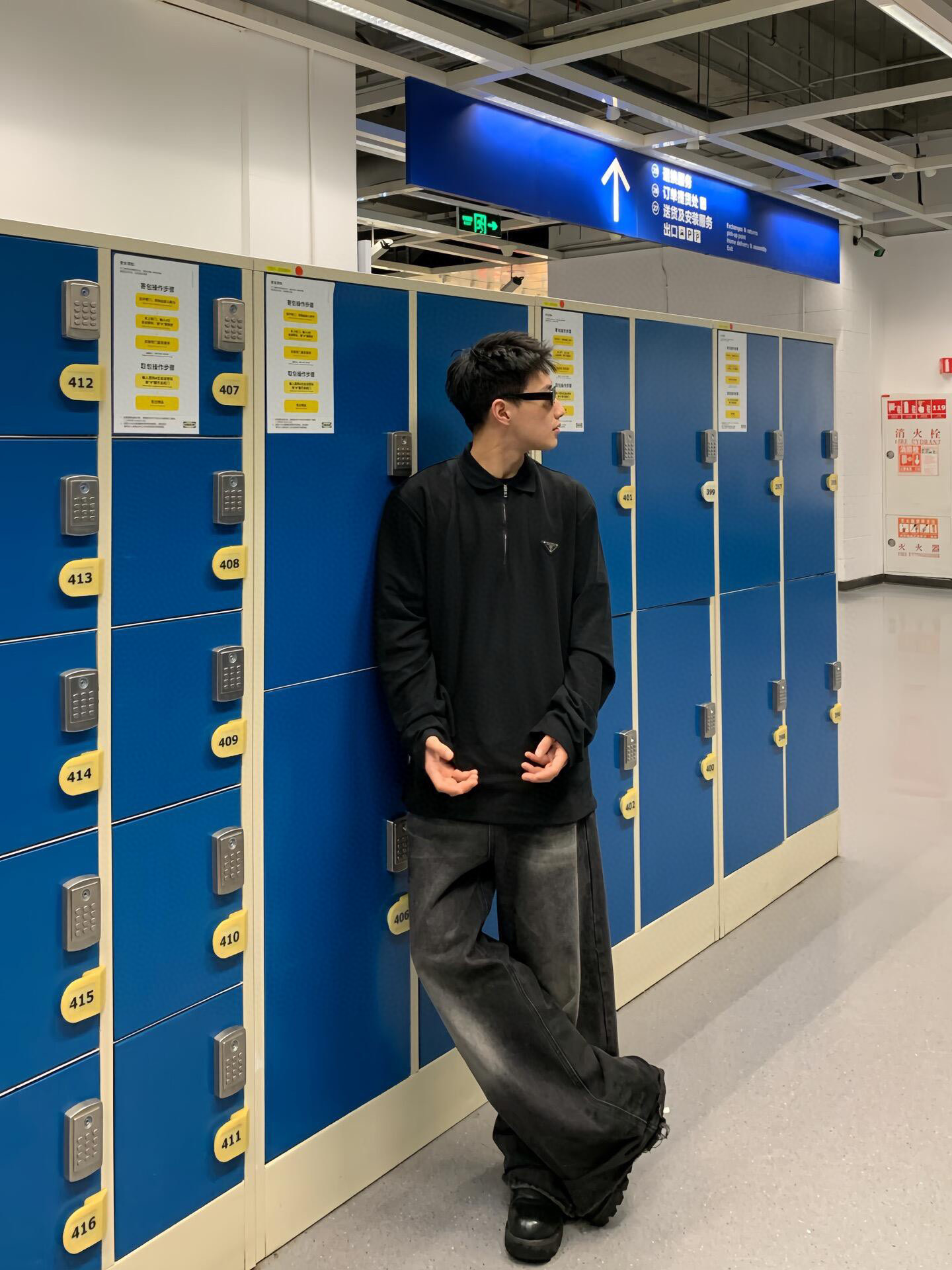 プラダ 長袖ピケ&Re-Nylonポロシャツ
