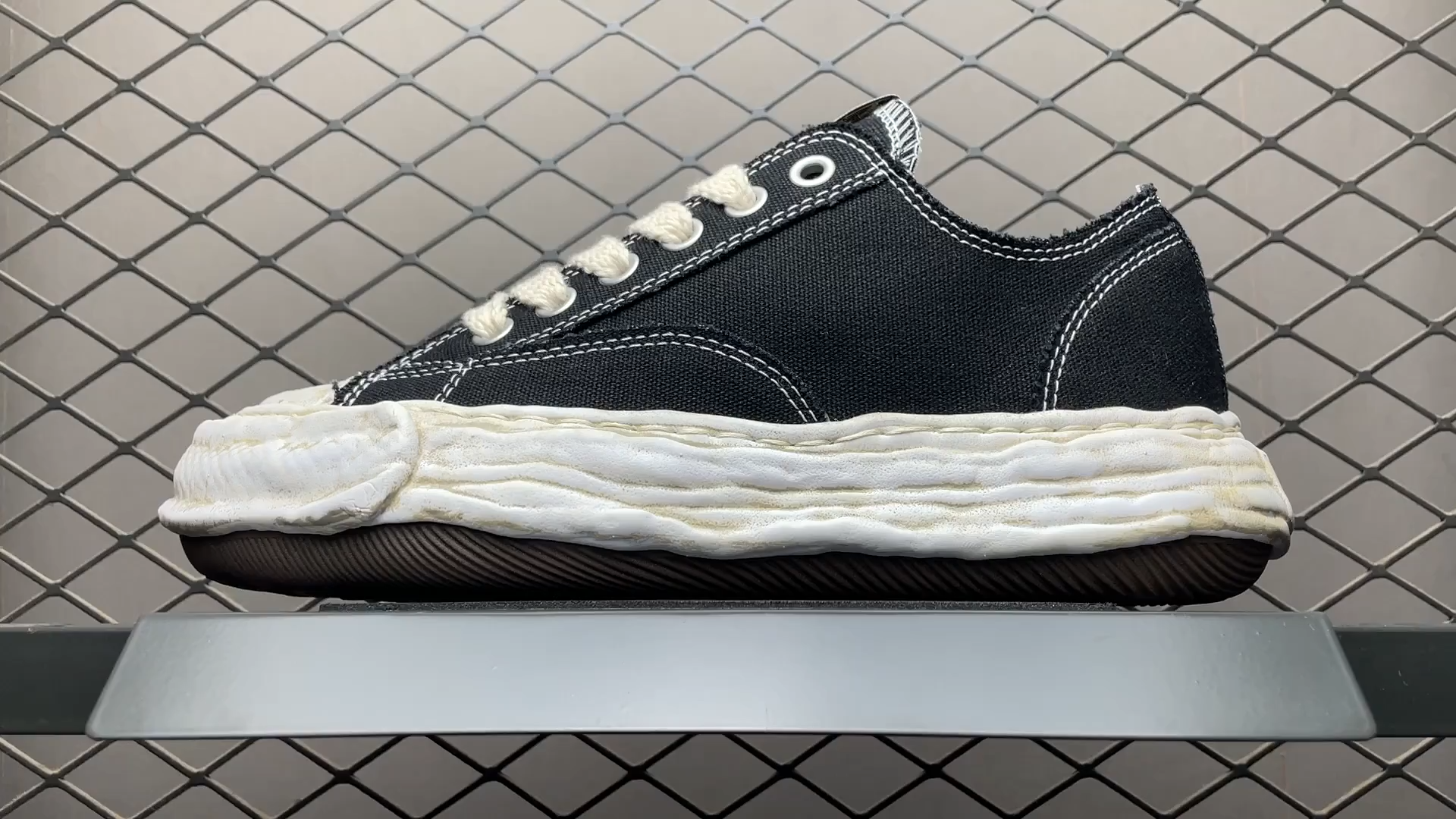 メゾンミハラヤスヒロ ピーターソン23 OG ソール ガーメントダイ キャンバス ロートップ スニーカー "ブラック"