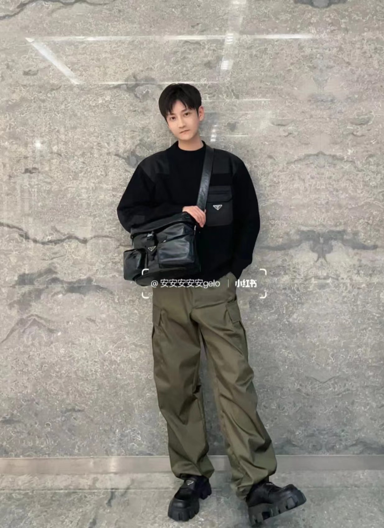 PRADA プラダ 無地 ナイロン パッチワーク ポケット スウェットシャツ ラウンドネック 長袖
